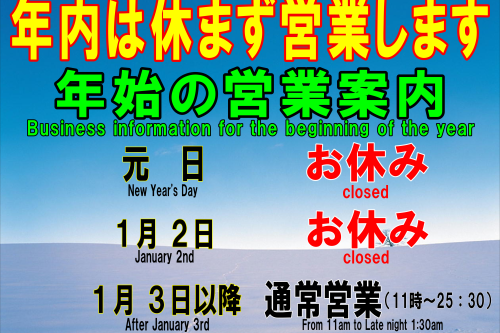 大晦日 営業時間 昼11時~25:30(完全閉店)