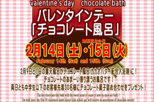 2月14日(土)&15日(日) 露天風呂 限定入浴剤「チョコレート風呂🍫」