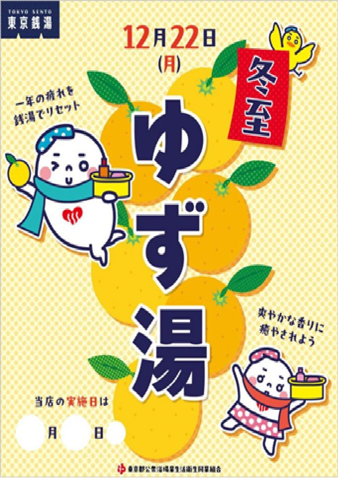 冬至はゆず湯に入って邪気を払い、運を呼び込む前に体を清める禊(みそぎ)を行いましょ~(^^♪