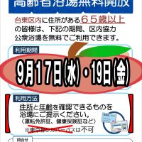 9月17日(水)、19日(金)は台東区内にお住いの65歳以上の方無料でご入浴いただけます。