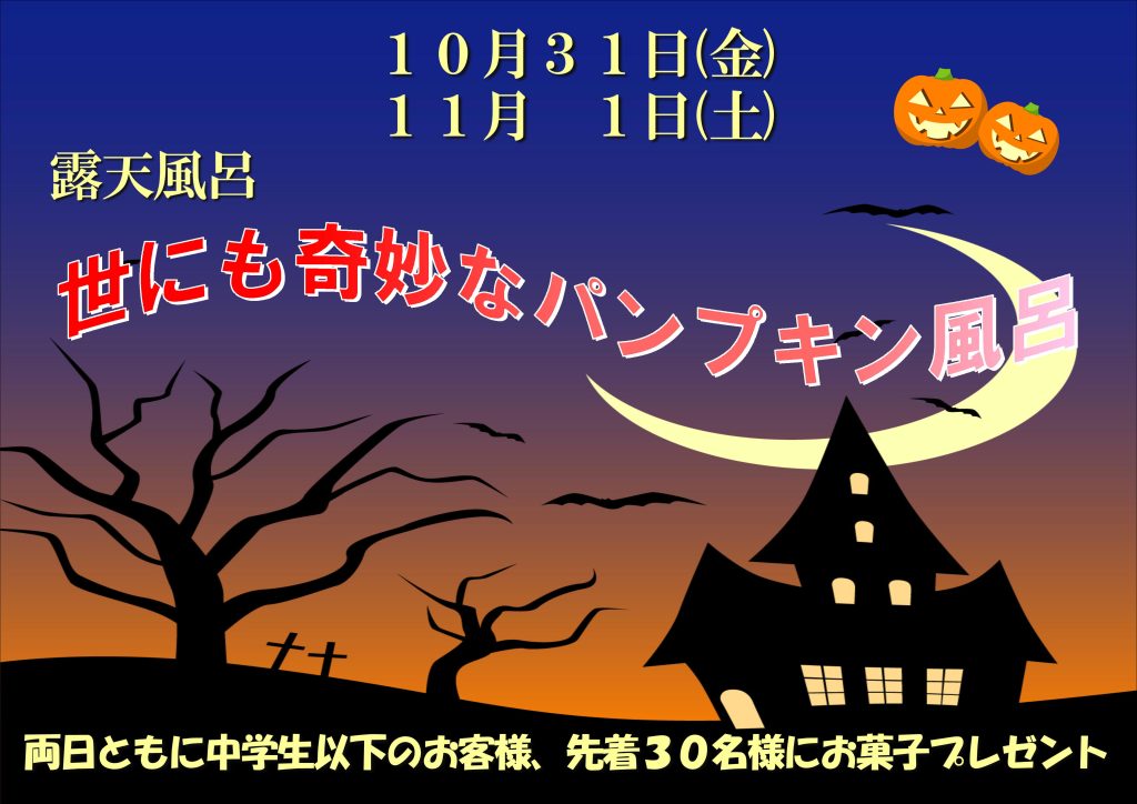 10月31日(金)、11月1日(日) 世にも奇妙なパンプキン風呂👻
