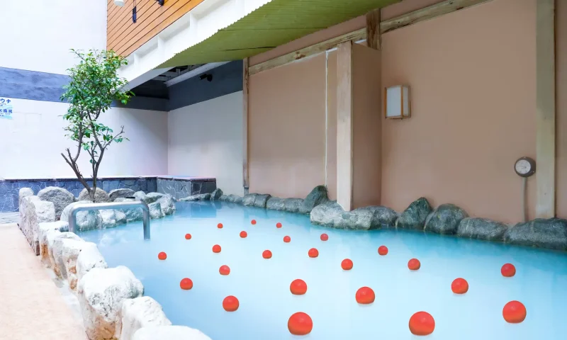 アミノ酸の入浴剤を使用し、アミノ酸をイメージしたカラーボールを浮かべたお風呂が登場。