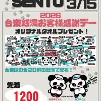 3月15日(日)は「お客様感謝デー2026」 中学生以上のお客様、先着1200名様に 台東銭湯オリジナルタオル、プレゼント〜