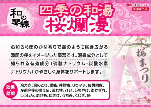 3月22日(日) 露天風呂 期間限定入浴剤「桜爛漫🌸」薬湯風呂 十種の生薬配合「巡(健美泉)」