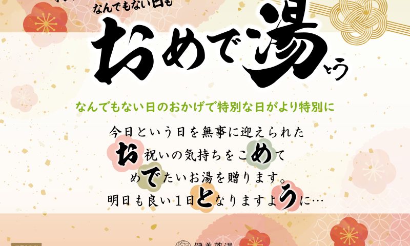 薬湯風呂は期間限定入浴剤【おめで湯(とう)】